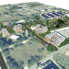 Aménagement urbain, place, voie piétonne, front de mer. Giratoire, voie routière, parking.